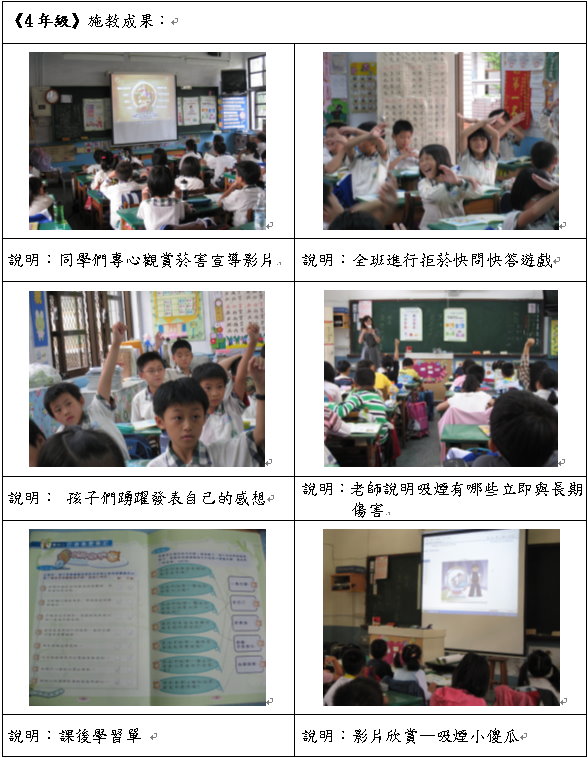 [導師反毒宣教成果][學生反毒宣導活動成果][「反菸去檳」宣導成果][「愛滋病」防治教育成果][辦理校園育樂活動-校園小藝人][辦理校園育樂活動-社團成果發表][辦理校園育樂活動--晨間律動]